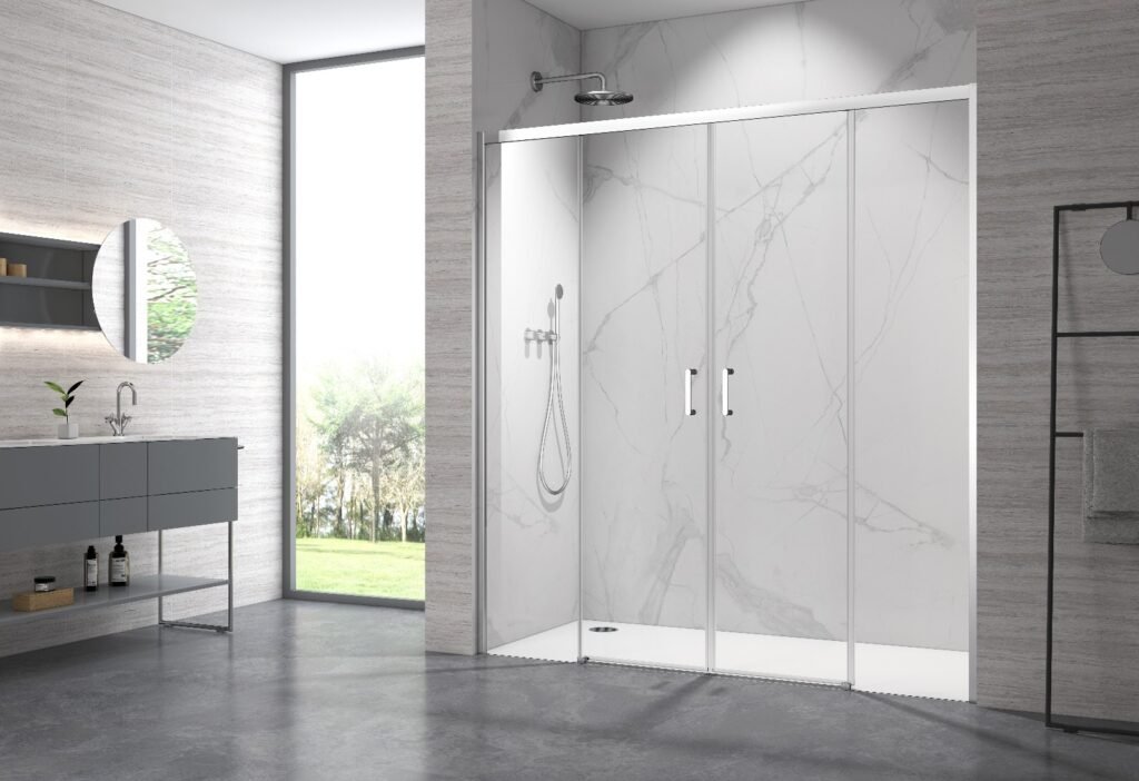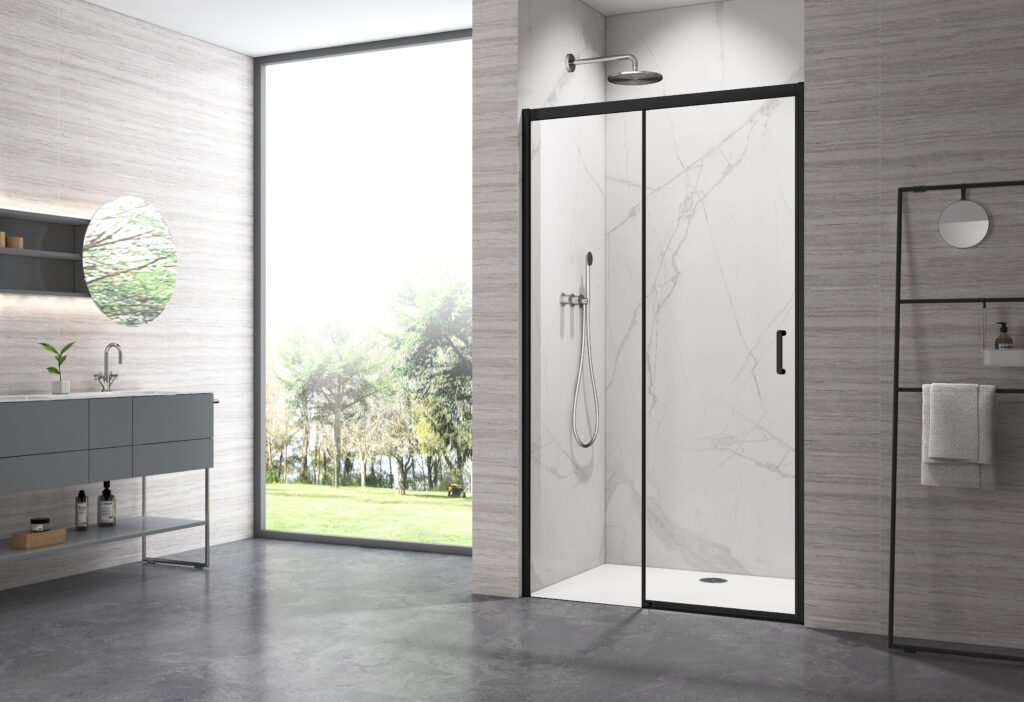 O design minimalista, com perfis em alumínio cromado ou preto, adapta-se a qualquer estilo de casa de banho, oferecendo um acabamento elegante e sofisticado.