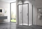 Frontal de duche SLIM com lateral fixa, em vidro temperado de 6mm com tratamento anti-calcário, disponível em várias medidas, com perfis cromados ou pretos.