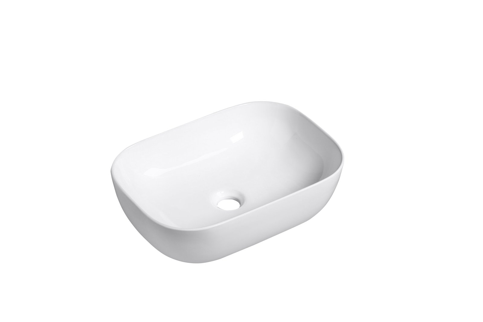 Lavatório cerâmico Porto em branco brilho retangular, 46x33x13,5. Design elegante e funcional para casa de banho moderna. Cerâmica de alta qualidade e acabamento premium.